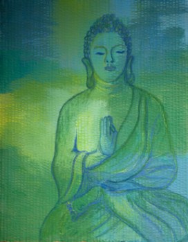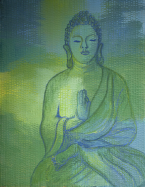 Byron Buddha, acrylic, pastel and ink on cardboard, 2011