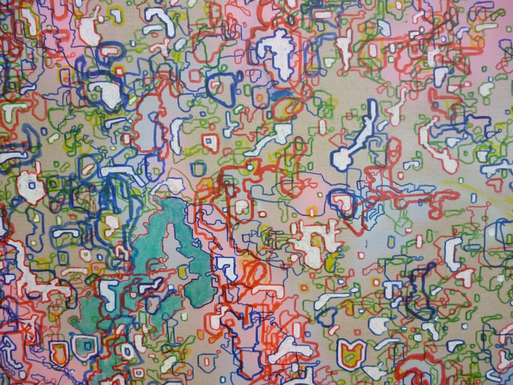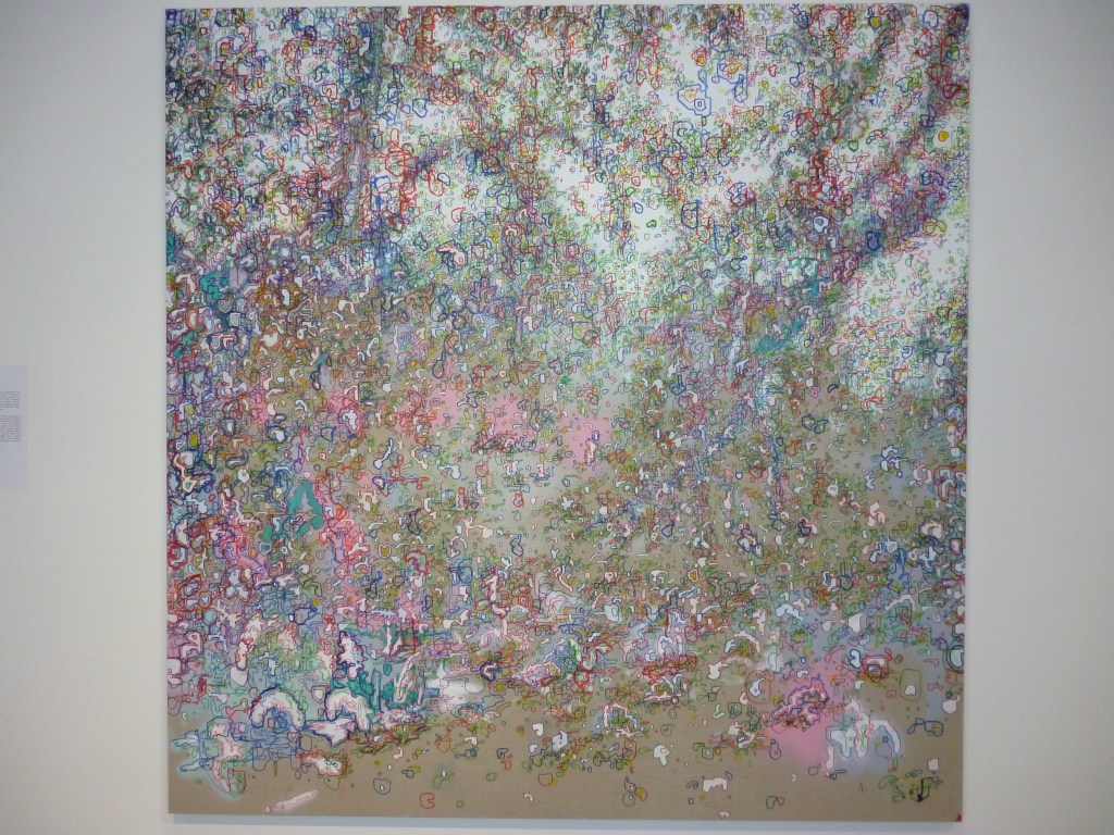 My favourite piece is by En-En See, called Love Letters. At first I wasn’t sure if it was an artwork, because it is made up of a number of hand cut vinyl flowers, scattered seemingly randomly, on the floor. It wasn’t taped or roped off and there weren’t any signs saying ‘do not touch’, so I assumed it was part of a decorative install. People walked on them and some of them got crumpled and folded over, just like real flowers would. En-En explained that the artwork was a response to a story about a white flower that grows in halves – one half grows near the sea, the other in the mountains, and together they form one perfect bloom (based on the legend of Nakapau). I’m a big fan of ephemeral art and this was a beautiful piece. I loved the way it wasn’t precious and roped off, like most art work, and was in fact more like street art, which slowly deteriorates in the weather, or gets peeled off or covered or tagged, evolving over time.